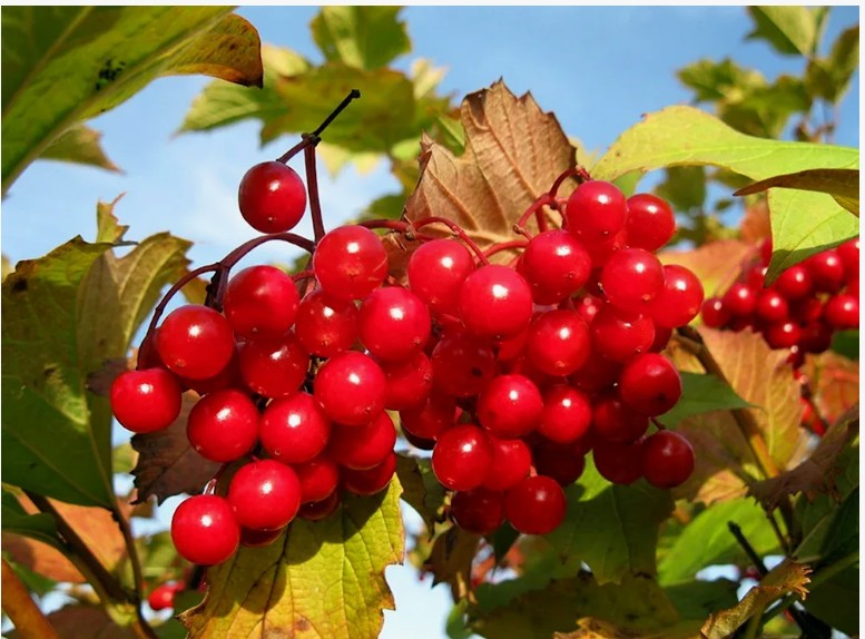 Ягоды калины обладают целебными свойствами, их используют в народной медицине для укрепления иммунной системы и улучшения работы сердца. Также они отлично подходят для приготовления варенья и компотов.
